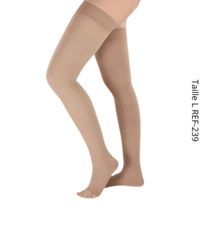 Bas de cuisse ANNAFIX Classe 2, taille L, à bout ouvert, favorisant la circulation sanguine et soulageant les jambes lourdes.