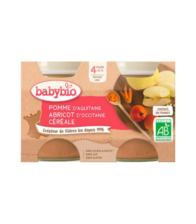 BABYBIO PETIT POT POMME ABRICOT CEREALES 2 x 130G