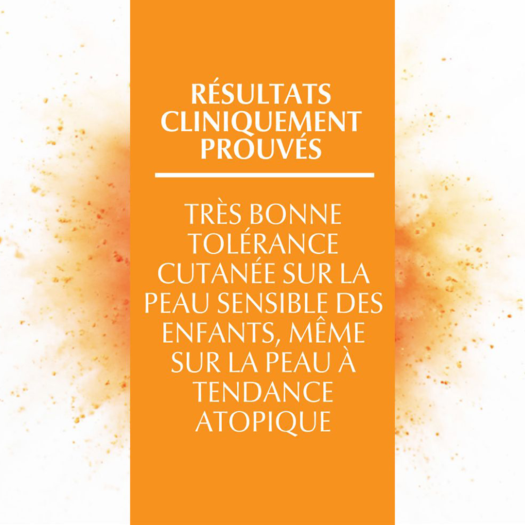 Très haute protection UVA/UVB (conforme aux recommandations de l’UE) contre les dommages causés par le soleil sur la peau délicate des enfants.
